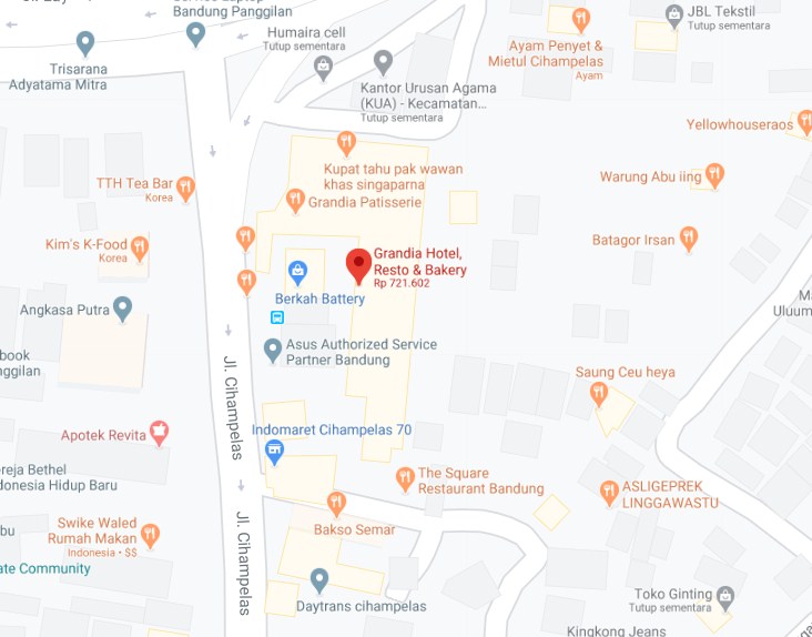 Alamat : Jl. Cihampelas No.80-82, Tamansari, Kec. Bandung Wetan, Kota Bandung